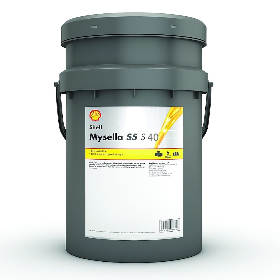 - Shell Mysella S5 S 40 має відмінні протизносні властивості і забезпечує чудовий контроль за утворенням відкладень. Ця олива кваліфікована як малозольна, отже, внесок оливи в утворення відкладень мінімізований. Олива сумісна з двигунами, оснащеними каталітичними нейтралізаторами CO, NOx і формальдегіду.